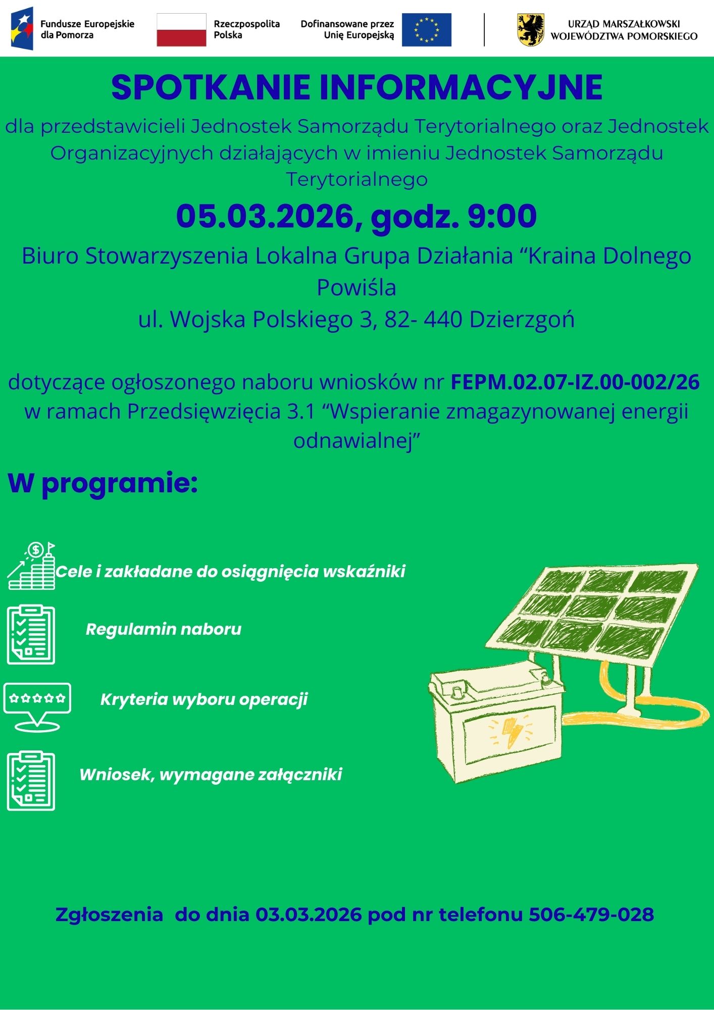 Zgłoszenia na spotkanie przyjmujemy  pod numerem telefonu 506-479-028 do dnia 03.03.2026r.
